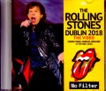 7ヶ月ぶり再開が話題沸騰中の“NO FILTER TOUR”。その初日「2018年5月17日ダブリン公演」をフルスケールでレポートする映像作品がリリース決定です。本作は海外マニアが制作した極上のオーディエンス・ショット。ただし、通常の一気貫通の撮影ではなく、さまざまな客席撮影を組み合わせ、ショウの全曲分+αに組み上げられたもの。編集とは言ってもマルチカメラでもありません。次々と公開される映像の中から曲単位で素晴らしいものを選び抜いた映像集。恐らく今回も精緻に作り込まれたマルチカメラ作品も制作されるとは思いますが、本作はまだその前段階。曲間もブツ切りで、とにかくショウのムードと演奏を通しで目撃できる1枚なのです。とは言っても、本作もただの寄せ集めではありません。1カット1カットが精査されているのは間違いなく、どれも「フルで見たい!」と思わせる極上モノばかり。ひと口にアングルや角度を語る事はできないものの、ほとんどの映像がステージ間近席から見上げで撮影されており、観客の姿に煩わされることなくステージを直視できる。しかも、それだけの近さから更に果敢なズーム。そのアップ度はミックの表情どころか、口元のシワや筋肉の動きに至るまでハッキリ・クッキリ見える。花道に出てくるや、それこそ「手を伸ばせば触れそう」な近さ。そんな接写中心なために会場のスケール感は味わいにくいものの、それこそプロショットの接写にさえ迫る見応えなのです。そして、音声もまた然り。これまたひとくくりには出来ないものの、爆音・轟音の類は一切なく、歌詞の1語1語まではっきりと分かるクリア・サウンドの連続です。また、「Just Your Fool」「The Worst」の2曲は映像を選びきれなかったのか、2種類ずつ収録しています(これが前述した「+α」です)。そして、この1曲ずつの構成が意外と良い。通しオーディエンスの弱点と言えば、淡泊になりがちな視界ですが、1曲ずつどんどん視点が変わっていくのが飽きさせない。しかも、マルチカメラ編集ではないので確かな体験感がある。目まぐるしく視点が変わるわけでもなく、じっくりと1曲ずつ味わう没入感とで言えばいいでしょうか。「飽きそう」と感じる前に次の視点になり、そこからまた浸る……の繰り返し。さまざまな特等席を瞬間移動しながらショウを体験していく……そんな贅沢な感覚に浸りきれる映像でもある。そして、その感覚で“LICKS TOUR”以来、15年ぶりとなる「Neighbours」(「もう何百年も演奏していない曲」のMCが未収録なのは残念!)を特等席から目撃できますし、“A BIGGER BANG”以来の「The Worst」も2テイクで見られるのです。曲間など、一部始終を目撃できる映像作が登場するかは分かりません。しかし、まずは全曲体験の第一報。