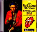 と、このようになっています。本作のマルセイユ公演は欧州大陸に移って2公演目。前後にドイツ公演を挟まれたコンサートでした。そんなショウを記録した本作は、6台に及ぶ絶景カメラでフルショウを目撃できる傑作映像。とは言っても、マルチカメラ編集ではありません。素晴らしい見晴らしのメイン・カメラでショウの大部分を通し体験しつつ、そこから漏れた4曲「Just Your Fool」「Paint It Black」「You Got The Silver」「Sympathy For The Devil」を別アングルで補完したもの(マルセイユ公演の映像が登場していない「Before They Make Me Run」のみ、シュトゥットガルト公演のテイクでフルショウ仕立てになっています)。曲間などにカットもあるため、厳密にはフルショウではありませんが、全曲分を現場感覚で楽しめる1枚なのです。そして、肝心のメイン・カメラは臨場感が素晴らしい。ステージ右寄りの1階席から斜めに捉えているのですが、高く掲げられているのか観客の頭上を飛び越え、遮蔽物なしでステージを直写している。しかも、ステージにも近く、花道も真横を通る。ワンカメではあるものの、ロニーの間近ショットからミックの背中越しに大会場のスペクタクルまで、多彩な光景で現場を一望できるのです。また、サウンドも光景に相応しく素晴らしい。間近に感じる逞しい芯が真っ直ぐに飛び込み、歌詞の1語1語までクリア。さすがに『MARSEILLE 2018』とは比較できないものの、歪みもない艶やかな録音は非常に聴きやすく現場の喧噪に負けない演奏と歌声に浸りきれるのです。そのクオリティで描かれるのは、最後のレア・ショウとでも言えるような一夜。実のところ、2018年も場数を踏むほどに定番が固まっていき、ライヴ毎の変化は少なくなっていきました。カーディフ以降、オープニングは「Street Fighting Man」が定番化し、毎晩変えていたキース・コーナーも「Before They Make Me Run」「You Got The Silver」に固定化。このマルセイユ公演もこうしたポイントは同じなのですが、日替わり曲に美味しい「Get Off Of My Cloud」「Fool To Cry」がセレクトされているのです。前者はカーディフ公演以来の2回目ですし、後者も衝撃的だったロンドン初日以来の2回目。シュトゥットガルト以降の3公演は、日替わり分も意外じゃないのが意外な感じでしたので、このマルセイユ公演はフレッシュな感触を味わえる最後のショウでもあるのです。ほぼリアル・タイムで追い続けてきた“NO FILTER TOUR”の映像レポート。そんな日々も終わりが近づいてきました。この夏最大のお楽しみを噛みしめる1枚。
