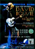 2016年1月10日デヴィッド・ボウイが69歳で死去した訃報は、世界中の音楽ファンのみならず、アート方面を含めあらゆるシーンに衝撃的なニュースとなることに。そしてそのボウイの、結果的に最後の来日となってしまった2004年の「Reality」ジャバン・ツアーの模様を映像でコンパイルしたタイトルがここに。まずdisc:1には、公演2日目となった3月9日、前日に続く武道館公演を、ステージほぼ正面2F席からの、ワンカメラながら安定したオーディエンス・ショットにて、139分にわたりほぼコンプリート収録。後半で一部途切れる部分もあるものの、クリアーかつ良好ショットとなるもので、しかも音声は別レコーディングのデジタル・オーディエンス・ソースをマトリックスした迫力あるサウンドによるものにて。 そして特筆すべきは前日の武道館とは、ガラリとセットリストも変わり、特に後半以降は初日にプレイされていない「Heathen」や「Reality」からのナンバーも披露され。初日が一般ファン向けセットだとしたら、こちらは熱心なファン向けといえるもの。さらには懐かしのStylophoneを取り出し、さわりを披露した"Space Oddity"が聞けたり、アンコールも5曲と、このジャパン・ツアーのベスト・アクトとなるもの。そしてdisc:2には、来日公演初日となった3月8日武道館から8曲と、11日、これが日本でのラスト・ステージとなった大阪公演のダイジェストを、こちらもステージほぼ正面2F席からの安定オーディエンス・ショットにて収録。直前の欧州公演からオーストラリア、シンガポールを経てバンドも充実。しかもセットリストがかなり大幅に変わる今回のツアーならではの楽しみは、このいきなり初演からで、今回のツアーでもあまり披露されていない、「LOW」からの"A New Career In A New Town"などはレア。他は割りとベストセレクトに近い選曲で、曲数も他公演よりやや少ないながら、観客に歌わせようとしてカラオケ状態になってやり直した"China Girl"なども懐かしい映像となることに。さらにボーナス的に、あの「STAGE」時期の定番映像である、1978年12月12日武道館公演をプロショット映像で追加した、こちらも必見のトータル108分。