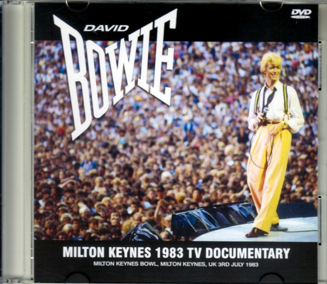 ショウ全体のスケール感、時代感を目で見せてくれるテレビ特番をお贈りします。本作は、当時のドキュメンタリー番組『SOUTH OF WATFORD』を収録したもの。2パートに別れており、前半は一大イベントとなった“ミルトン・キーンズ・ボウル公演”での模様を、後半は映画『戦場のメリークリスマス』をフィーチュアしています。前半の“ミルトン・キーンズ・ボウル公演”もライヴ映像ではなく、あくまでドキュメンタリー。パフォーマンス・シーンもあるものの、メインは会場でのインタビューです。まず登場する会場の光景からして圧巻。“ミルトン・キーンズ・ボウル”は、巨大なすり鉢状の地形なのですが、そこにビッシリと詰めかけた人、人、人の群れ。喩えは悪いのですが、まるで夢の島のゴミのよう。それも、1つ1つが意志を持って蠢いている光景なのです。地上からの撮影でも、群衆に埋め尽くされた地表はまるで肌色の地形。しかも、これは3日間のうちの1日に過ぎない。いかにボウイ人気が絶頂を極めていたのか、その凄まじさが一目で分かる強烈な映像なのです。そして、そこに集った人々のインタビューからは時代感覚が吹き出す。ニューウェーヴなファッションの若者はもちろん、ワイルドなロック野郎、ボウイの親世代くらいの老婦人、子連れの家族等々など。老若男女がボウイやこのイベントについて想いを語る。特に衝撃的なのは、一糸まとわぬオールヌードで日光浴をしている女性。しかも性別を忘れた中高年ではなく、スタイルもバツグンな女性。最初は寝ているようにも見えますが、テレビカメラに気づいてもその姿のまま、普通にインタビューに応えているのです。まったくもって我が目を疑うシーンですが、現代では絶対に放送できない光景がテレビで放送されていた。これだけでも猛烈な時代感覚です。前半のミルトン・キーンズが老若男女に愛された“ポップスター・ボウイ”の現実だとすれば、後半は“ムービースター・ボウイ”に焦点が当てられている。映画『戦場のメリークリスマス』の名シーンをふんだんに使ったドキュメンタリーです。この映画がイギリスで公開されたのは、この年の8月。ミルトン・キーンズ公演の時点で日本公開はされていますが、イギリスでは封切り間際でした。そんな『戦メリ』の宣伝でもあったのか、有名シーンの数々と俳優ボウイの演技を語る関係者のインタビューが流れるのです。ボウイのシーンを凝縮して並べ、日本語台詞に英語字幕が乗る編集は、言わば“イギリス人視点の『戦メリ』”。お馴染みの映画でも違って見えてくるから不思議です。ポップスターとしての顔、銀幕スターとしての顔を加えて人気の頂点を極めた1983年のボウイ。現代の視点から振り返れば、これもまた七変化の真骨頂でした。2CDの熱演は、なぜああも熱いのか。CD盤の向こう側にいる観客たちの表情と共に、時代の熱風を届けてくれる衝撃映像。世界的な傑作ライヴアルバムと併せ、ぜひボウイ史上でも絶頂を極める大気を思いっきり吸い込んでください。