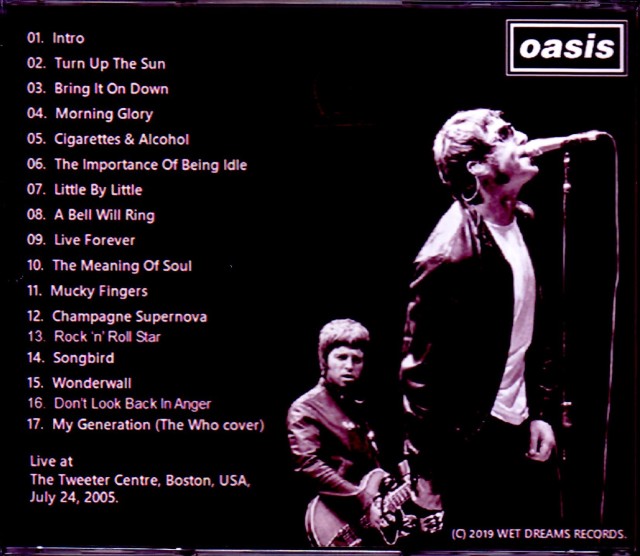 “オアシス”2005年7月24日、ボストン・ツィーター・センターでのステージを高音質サウンドボードで収録したタイトルが登場!本タイトルは、 2005年か2006年にかけて行われた「Don’t Believe The Truth Tour」よりボストン・ツィーター・センターでの迫力のライブを収録したタイトル。この翌月、ヘッド・ライナーとして登場したサマー・ソニックのセットと、ほぼ同じなのも嬉しい限り!まさに“オアシス”後期の洗練されたサウンドは圧巻!オススメのライブ盤!!