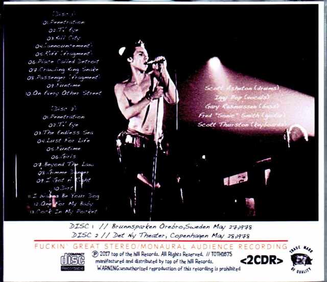 (Disc 1) 01.Penetration 02.TV Eye 03.Kill City 04.(announcement) 05.Riff (fragment) 06.Place Called Detroit 07.Crawling King Snake 08.Passenger (fragment) 09.Funtime 10.On Every Other Street
