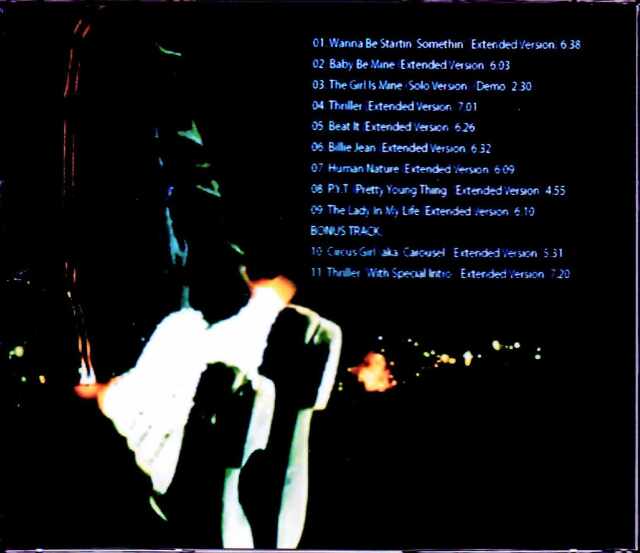 01. Wanna Be Startin' Somethin' (Extended Version) 6.38 02. Baby Be Mine (Extended Version) 6.03 03. The Girl Is Mine (Solo Version) (Demo) 2.30 04. Thriller (Extended Version) 7.01 05. Beat It (Extended Version) 6.26 06. Billie Jean (Extended Version) 6.32