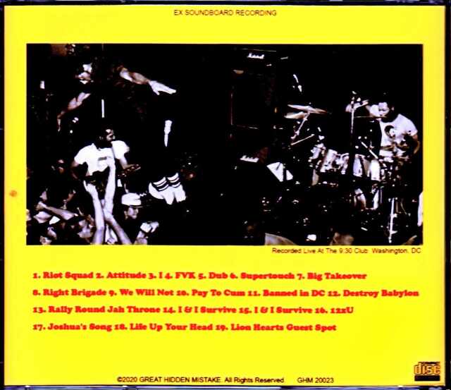 1. Riot Squad 2. Attitude 3. I 4. FVK 5. Dub 6. Supertouch 7. Big Takeover 8. Right Brigade 9. We Will Not 10. Pay To Cum 11. Banned in DC 12. Destroy Babylon 13. Rally Round Jah Throne 14. I & I Survive 15. I & I Survive 16. 12xU 17. Joshua's Song 18. Life Up Your Head
