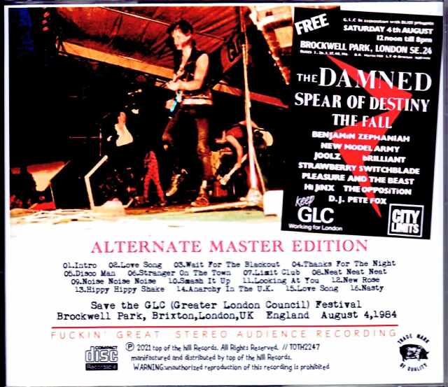 84年、キャプテン脱退前最後のステージとなったブリクストン公演を収録したレア音源が新発掘ソースより音質アップしたアップグレードエディションで登場!ソロ活動専念のために脱退するキャプテン在籍時のラストステージとなった84年8月4日ロンドン、ブリクストンで行われたセイブ・ザ・GLC・フェスティバル出演時のライブをステレオ・オーディエンス録音で収録した同レーベル既発盤『CAPTAIN'S LAST STAND』が新発掘された別ソースより音質アップしたアップグレードエディションで新登場!既発盤で使用されたソースでは粗めの音像でオーディエンスのノイズが入る箇所がありましたが、本作で使用された新発掘ソースでは非常に安定感のあるステレオ録音でノイズも少なく、既発盤同様にヴォーカルが大きめで抜けの良さはそのままにさらにクリアで良好な音質にアップグレードされています。またマスターに起因するピッチのズレは丁寧に修正されています。5枚目のアルバム『ストロベリーズ』から"Stranger On The Town"、81年リリースのEP『FRIDAY 13th』から"Disco Man"、"Limit Club"、そして当時のシングル"Thanks For The Night"、"Nasty"を含むこの当時ならではの強力なセットリスト!ステージへ押し寄せるオーディエンスに下がれ!と吐き捨てながらの伝説のライブを堪能できます!