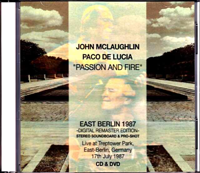 1987年7/17、東ベルリンのトレップトアー・パークでおこなわれたジョン・マクラフリン&パコ・デ・ルシアによるアコースティック・デュオ・ライヴを、2021年最新のリマスターが施された極上ステレオ・サウンドボード録音&高画質プロショット映像で収録したマニア必携のタイトルが入荷。リターン・トゥ・フォーエヴァーの「Spain」で幕を開けたステージは、アル・ディ・メオラを加えたトリオ名義で世に放たれた名盤『Friday Night in San Francisco』『Passion, Grace & Fire』などに収録された楽曲群で構成された聴き応え満点の内容となっています。ジョン・マハヴィシュヌ・マクラフリン45歳、天才パコ・デ・ルシア40歳、正に脂の乗り切った絶頂期の火花飛び散る共演。対照的なスタイルを有する超個性的な二人の巨匠が紡ぎ出す奇跡的な瞬間の数々を最高の音と映像で完璧に捉えた会心作。Treptower Park, East Berlin, Germany 17th July 1987 [Stereo Soundboard Recording (2021 Digital Remaster Edition)]