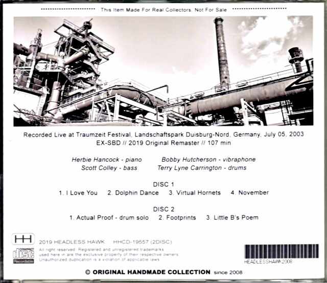 Live at Traumzeit Festival,Landschaftspark Duisburg - Nord,Germany July.05.2003 EX - SBD 2019 Original Remaster 107 min Disc 1 1. I LOve You 2. Dolphin Dance 3. Virtual Hornets 4. November Disc 2 1. Actual - Proof - Drum Solo 2. Footprints 3. Little B's Poem