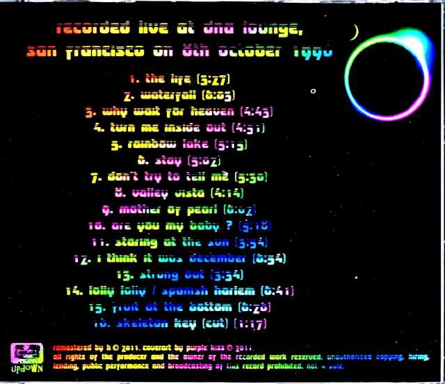 The Life Waterfall Why Wait For Heaven Turn Me Inside Out Rainbow Lake Stay Don't Try To Tell Me Valley Vista Mother Of Pearl Are You My Baby Staring At The Sun I Think It Was December Strung Out Lolly Lolly - Spanish Harlem Fruits At The Bottom Skeleton Key (Cut)
