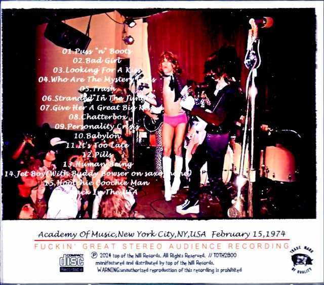 01.Puss "n" Boots 02.Bad Girl 03.Looking For A Kiss 04.Who Are The Mystery Girls 05.Trash 06.Stranded In The Jungle 07.Give Her A Great Big Kiss 08.Chatterbox 09.Personality Crisis 10.Babylon 11.It's Too Late 12.Pills 13.Human Being 14.Jet Boy(With Buddy Bowser on saxophone) 15.Hootchie Coochie Man 16.Back In The USA