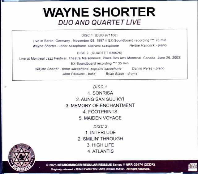 Wayne Shorter Duo and Quartet Herbie Hancock,Danilo Perez,John Patitucci ウェイン・ショーター/Germany 1997 Soundboard Edition & more