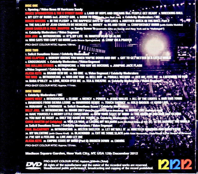 Various Artists Paul McCartney,Bon Jovi,Billy Joel,Bruce Springsteen,Rolling Stones,The Who/121212 NY,USA 2012 Complete jewel ver.