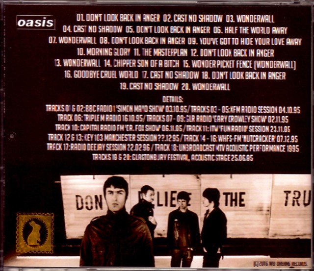 01. Don't Look Back In Anger / 02. Cast No Shadow / 03. Wonderwall / 04. Cast No Shadow / 05. Don't Look Back In Anger / 06. Half The World Away / 07. Wonderwall / 08. Don't Look Back In Anger / 09. You've Got To Hide Your Love Away / 10. Morning Glory / 11. The Masterplan / 12. Don't Look Back In Anger /