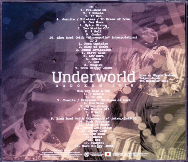 来日公演音源で評判の高いレーベルより、2016年11月9日日本武道館公演の模様を、ベスト・クオリティーの音と映像でカッブリングしたタイトルがここに。まず音源はフロント・ローからのデジタル・オーディエンス・マスターよりコンプリート収録。この2016年は3月にリリースされた「バーバラ・バーバラ・ウィ・フェイス・ア・シャイニング・フューチャー」リリースにおける来日、サマソニへのヘッドライナーとしての参戦、そしてこの単独公演と、3度の来日となっている中、単独ライブはこの武道館1公演のみというプレミアム・ショーで、しかもサマソニのセット仕様のショート・セットではなく、完全フル・ライブとなるもの。そしてこのプレミア・ライブはサマソニ同様、同アルバムからの「I Exhale」、「If Rah」でスタート。体の芯を揺さぶるリズムと、カールの心地良く響く低音で会場を暖めたところで、「Two Months Off」からは踊らせにかかったかと思えば、その後また同アルバムからのミドル・テンポなナンバーで落ち着かせると、その緩急はさすが。そしてまたすぐさま響き渡る鋭いサウンドも鳴り響き、程よい間隔でショーは進行し、終盤は鉄板の流れである「Rez」から「Cowgirl」あたりの盛り上がりは最高潮。そしてラストはもちろん「Born Slippy」でエンドというカンペキなパフォーマンス。さらに映像は当日の模様を、ベスト・クオリティーのオリジナル・オーディエンス映像で収録したDVDとBlu-rayの両方を付属。もちろん同内容で、ステージ真正面からシューティングされた安定感抜群のショットで収録されており、視界を遮る障害物もなく、クローズ・ショットも多用されたハイクオリティー映像は、こちらも本ライブ映像としてはベストと断言できるもので、特にブルーレイはその大容量を活かし、HDカメラ元素材そのままのクオリティーにて。2016年唯一の単独ライブを最高のクオリティーでコンパイルした永久保存メモリアル・アイテム。