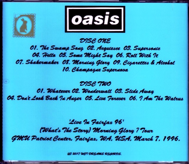 1996年、この年3度行なわれた北米ツアーのファースト・レグ(2月23日-3月13日)より、3月7日バージニア、フェアファックス公演の模様を、放送用マスターからのステレオ・サウンドボード音源にてコンプリート収録。まずビルボードでもセカンド・アルバム『(What’s The Story)Morning Glory?』が最高位4位を記録し、「Wonderwall」も大ヒットの真っ只中のツアーで、前年6月にアラン・ホワイトが加入し、セット・リストをセカンド・アルバム仕様にして、本国のみならずアメリカや日本でも人気を決定づけることに。なおこの3日後のプロヴィデンス・ストランド・シアター公演にて、ノエルのソロ・アコースティック・セットで「Wonderwall」を演奏中に、オーディエンスが投げた靴がノエルを直撃。そしてブーイングの中、ノエルは何も言わずにステージを去り、そのあと、すかさずリアムが飛び出してきてオーディエンスに文句を言い、結局ライヴが打ち切られてしまったことで知られており、後味の悪い全米ツアーとしてのちに語り草になっており、その直前のフル・ライブをサウンドボードで聴けるあたりは、初期オアシスを知るにはマストといえる内容と、ハイテンションなバンド・サウンドは、全編必聴。
