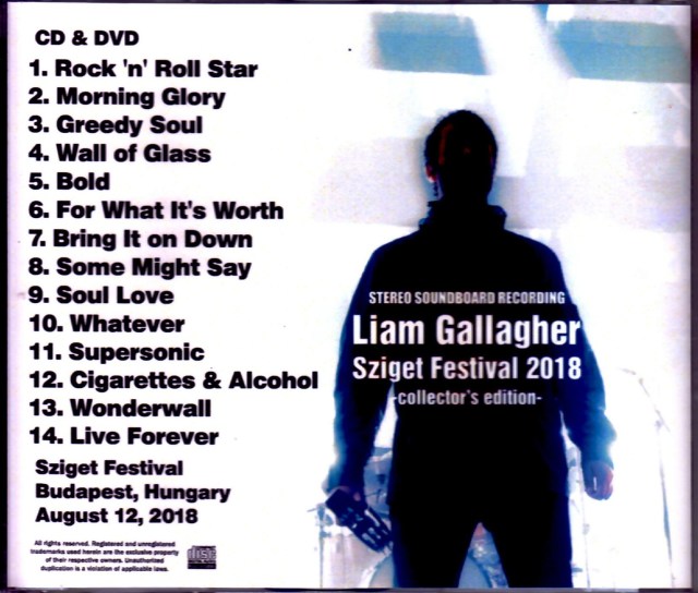 「そうかい、兄貴がそうなら俺っちにも考えがあるぜ・・・」。男の怒りか?リアム・ギャラガー2018年最新ライヴ!8/12ハンガリーのブダペストでおこなわれたパフォーマンスが超美麗プロショット映像&超高音質ステレオ・サウンドボード録音で登場!男の名はリアム・ギャラガー!!一人で再結成してやるぜとばかりの凄まじい内容!禁じ手の「Whatever」まで飛び出すファン狂喜のパフォーマンス!そのテンションのまま来日してくれ!!!