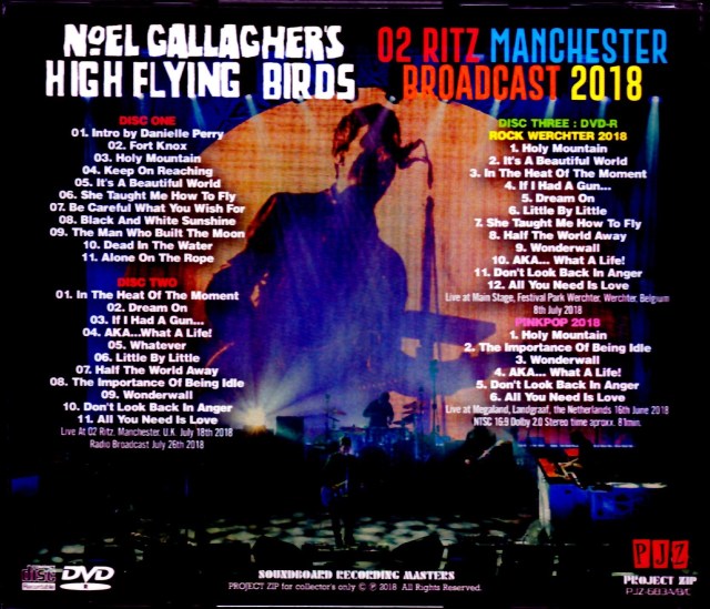 2018年最新アルバムの発表、そしてサマーソニック2018のヘッドライナーも決定している”ノエル・ギャラガーズ・ハイ・フライング・バーズ”の最新サウンドボード・ライブとプロショット映像がカップリングで初登場!2018年7月18日英国マンチェスターO2リッツでの公演をラジオ放送音源より収録。実際のライブから数曲未放送ですが、ほぼコンサートを収録しておりサマソニの予習に聞き逃せない最新ライブ音源です。さらにDVD映像にはベルギーでのロック・フェスとオランダ・ピンクポップ・フェスでのプロ・ショット・ライブ映像も収録。来日前の最新ライブを音と映像でお届けする必聴必見タイトルです!!