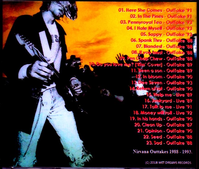 01. Here She Comes - '91 / 02. In The Pines - 91 / 03. Pennyroyal Tea - '93 / 04. I Hate Myself - '93 / 05. Sappy - '93 / 06. Spank Thru - '88 / 07. Blandest - '88 / 08. If you must - '88 / 09. Pen Chap Chew - '88 / 10. Do you love me? ['Kiss' Cover] - '89 / 11. Been a son - '89 /