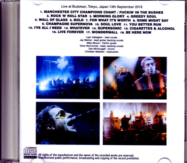 12. I've All I Need 13. Whatever 14. Supersonic 15. Cigarettes & Alcohol 16. Live Forever 17. Wonderwall 18. Be Here Now