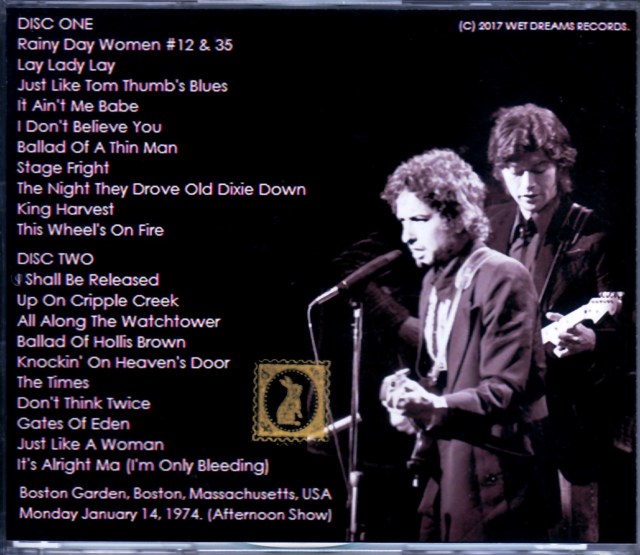DISC 1 : 01. Rainy Day Women #12 & 35 / 02. Lay Lady Lay / 03. Just Like Tom Thumb's Blues / 04. It Ain't Me Babe / 05. I Don't Believe You 06. Ballad Of A Thin Man / 07. Stage Fright / 08. The Night They Drove Old Dixie Down / 09. King Harvest 10. This Wheel's On Fire