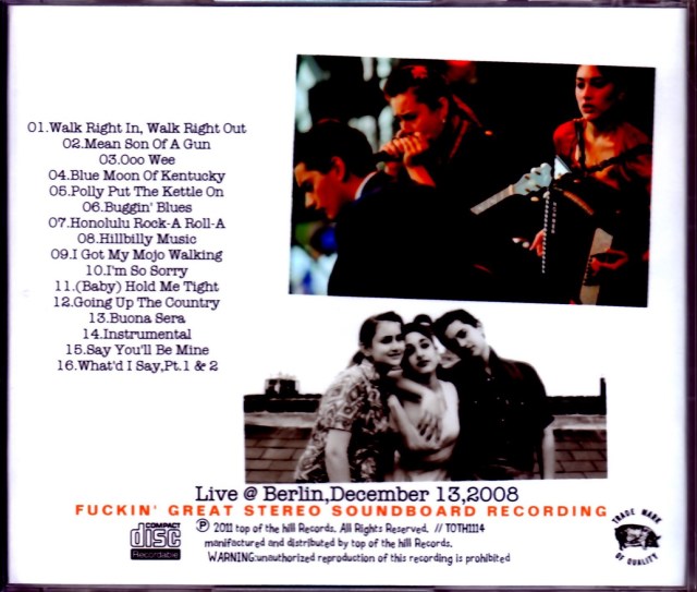 デビューアルバムリリース時の08年12月13日に行なわれたベルリンでのライブを、高品質ステレオサウンドボード録音&完全収録!リリース前の「I’m So Sorry」(新作「Smoking~」収録)では祖父エディ・ソーントンも加わり、しかも未リリースのレアナンバー「Buona Sera(ルイ・プリマのカバー)」もプレイ!他にも、キティとデイジー2人によるOPでのアカペラ「Walk Right In~」、さらにアンコールでプレイされたレイ・チャールズの「What’d I Say,Pt.1&2」カバーも聴ける極上のライブアルバム!
