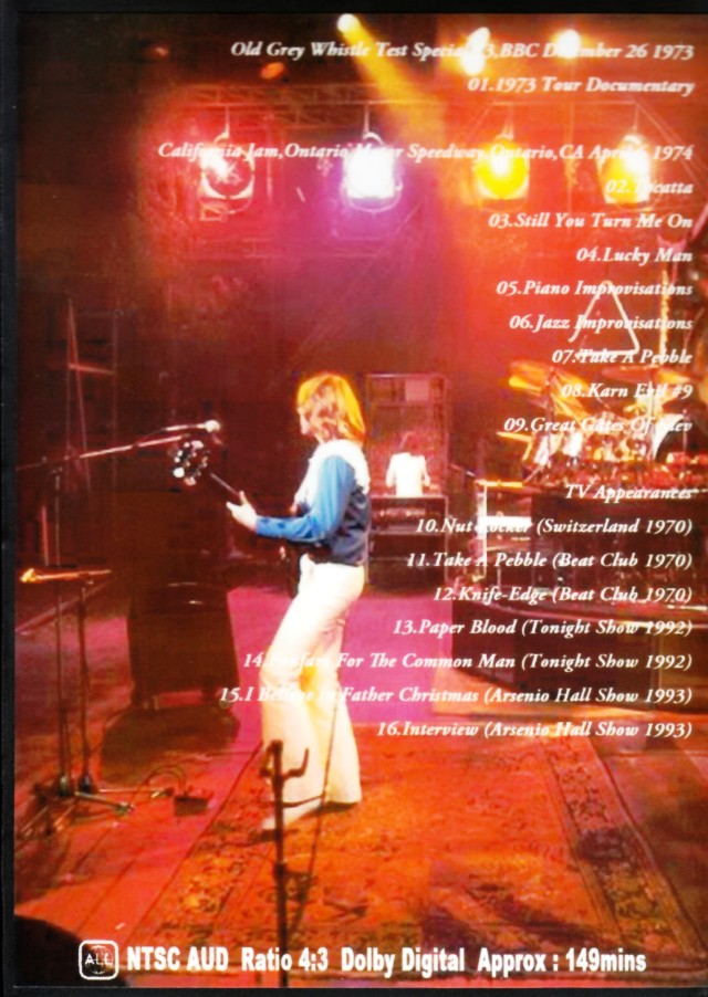 /11.Take A Pebble (Beat Club 1970)/12.Knife-Edge (Beat Club 1970)/13.Paper Blood (Tonight Show 1992)/14.Fanfare For The Common Man (Tonight Show 1992) /15.I Believe in Father Christmas (Arsenio Hall Show 1993)/16.Interview (Arsenio Hall Show 1993)
