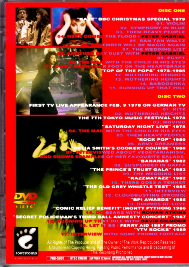 5.Wuthering Heights(Snl 1978) 6.Army Dreamers(Rock Pop 1980) 7.Interview(Cookery Cource980)8.Suspend In Gaffa(Bananas 1982) 9.The Wedding List(Princes Trust Gala 1982) 10.There Goes A Tenner(Razzmatazz 1982) 11.Interview 12.Cloudbusting(The Old Grey Whistle Test 1985)