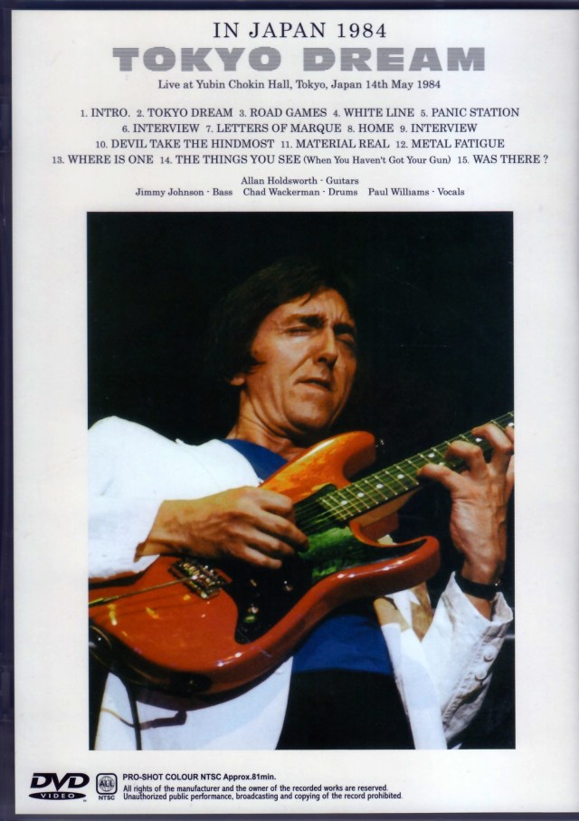 伝説の初来日公演を収めたオフィシャル映像が登場です。ALLAN HOLDSWORTH BANDが初めて日本を訪れたのは1984年。折からのフュージョンブームに加え、EP『ROAD GAMES』がグラミー賞にノミネートされるといった話題もあり、ホールクラスの単独ツアーが実現したのです。そんな人気もあってか、「1984年5月14日:郵便貯金会館」公演ではオフィシャル撮影も実現。公式映像がリリースされたのです。本作は、その公式作品『IN JAPAN 1984 : TOKYO DREAM』を史上最高峰クオリティで収録したもの。まずは、初来日ツアーの日程からポジションを確認しておきましょう。