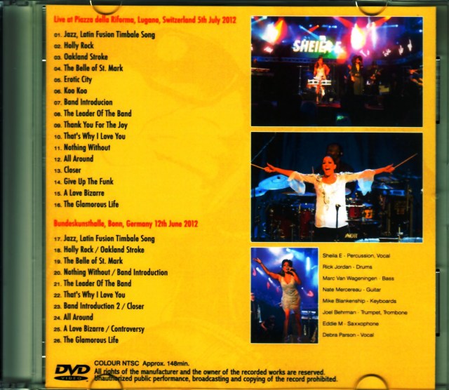 シーラ・イー、貴重なライヴ映像が登場しました。オフィシャルも含め、本当に久しぶりのプロ・ショット映像です。今回はスイス公演。ドイツ公演のカップリングとなります。プリンスと一緒のステージとはまた一味違った、自らのルーツのラテン寄りなアレンジでの、溌剌としたライヴが楽しめます。2013年にはニュー・アルバムが予定されていますが、この日も何曲かが新曲として紹介されていて、早くも新作の中の曲が演奏されたのかも知れません。プリンスのペンによる”The Leader of the Band”というナンバーも注目です。まだまだ若さいっぱいのグラマラスなパフォーマンスをご覧いただけます。